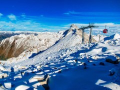 达古冰山. 一个夏天可以穿羽绒、可以玩雪的地方,是中国第一彩色冰川,海拔 4860 米;拥有世界上海拔最高的索道,冰山山顶终年积雪,气势磅磗,山峰错落有致,在阳光的照射下银光灿灿,十分壮观。