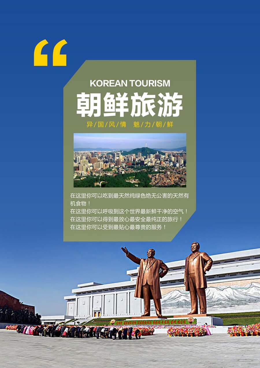 14.朝鲜国情特殊、风俗独特。人民十分敬仰领袖,民族自尊心极强。有礼貌、讲文明。请您入乡随俗,尊敬朝鲜的国家领袖【称呼为:金日成主席、金正日将军、金正恩同志】。