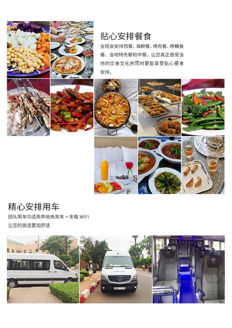 早餐均为酒店自助,各午晚餐均为中餐和当地餐. 摩洛哥是伊斯兰教国家,禁食猪肉。
