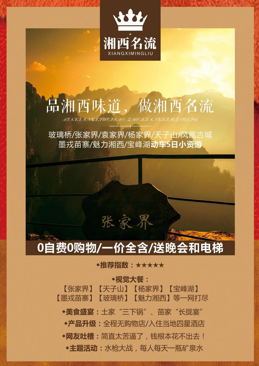 【湘西名流】<玻璃桥/张家界/袁家界/杨家界/天子山/凤凰古城/墨戎苗寨/魅力湘西/宝峰湖/动车五日小资游>0自费0购物 推荐 特价 热卖 新品 团购
