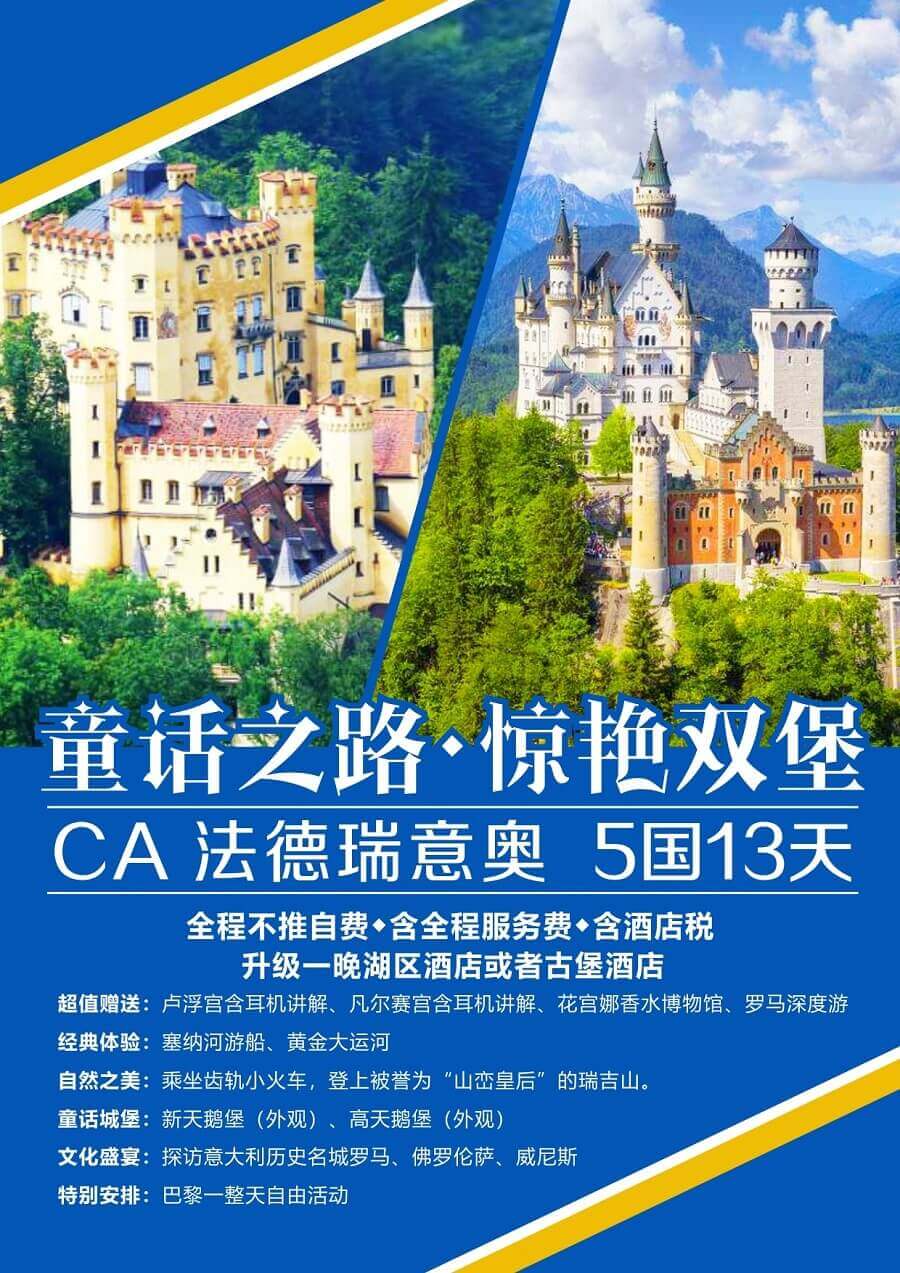 2.欧洲旅行用餐,午餐及晚餐一般以中式餐为主,若由于特殊原因(如:部分城市没有中餐厅、有些中餐厅不接待团队、行程用餐时间在高速公路休息站,无法安排中餐、由于堵车等原因导致用餐时间延误等)不能安排中餐,导游有权选择西餐或按公司标准作退餐费处理。很多客人对欧洲的中餐口感会不习惯,建议您可以带上一些自己喜欢的调味食品并托运。