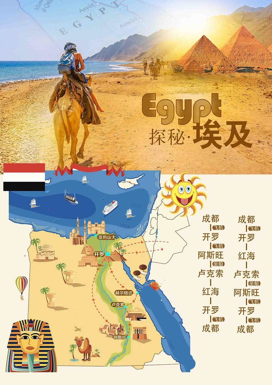 【时差】:埃及比北京时间晚6小时,行程表中所列航班的起抵时间均为当地时间。
