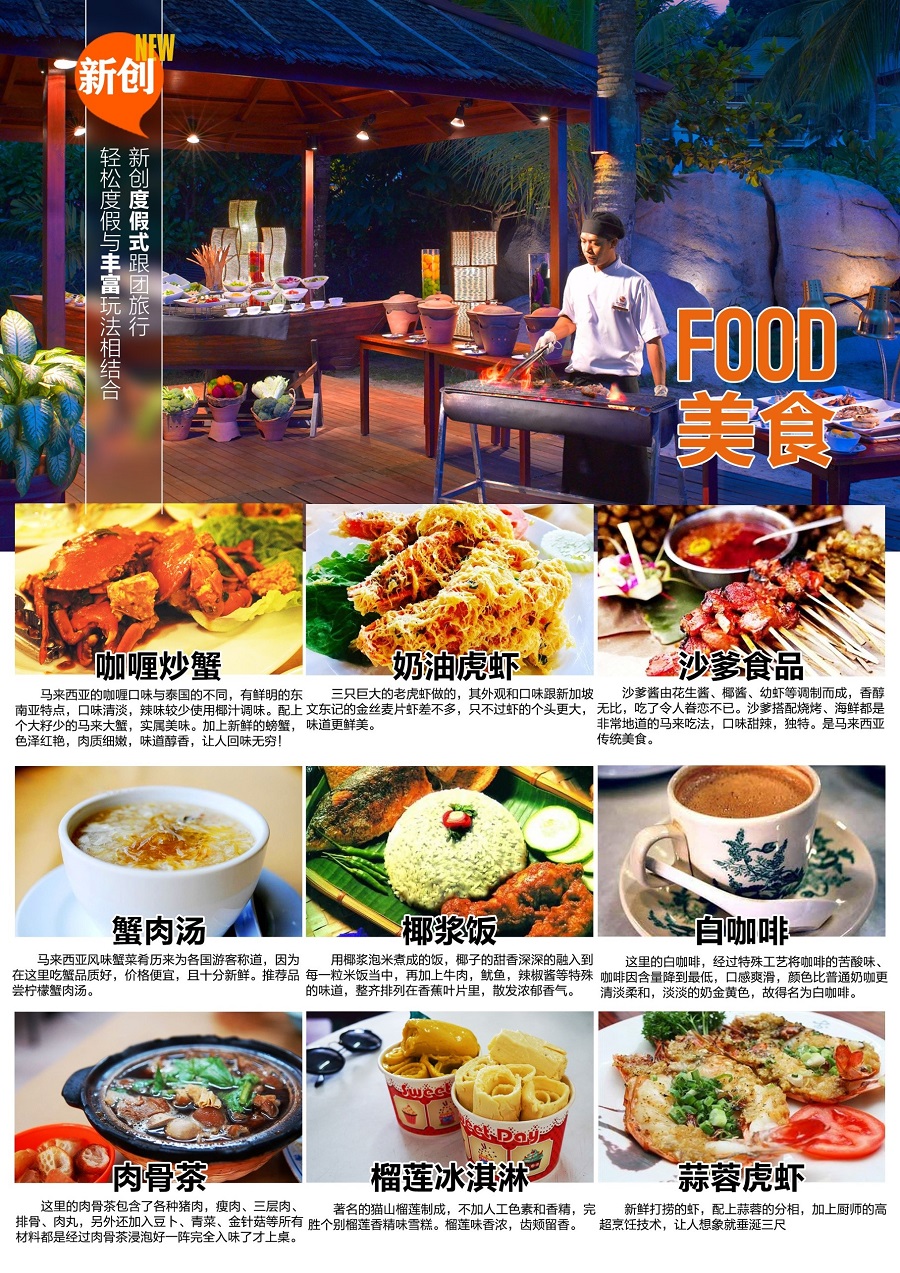 11、用餐:自助餐请切勿浪费,按量取食,如切实遭横浪费的,餐厅有权收取规定的罚金;当地餐多为南洋口味,浓郁的椰奶香加上香料和辣椒等烹调成。特别提示:当地自来水不适宜直接饮用;