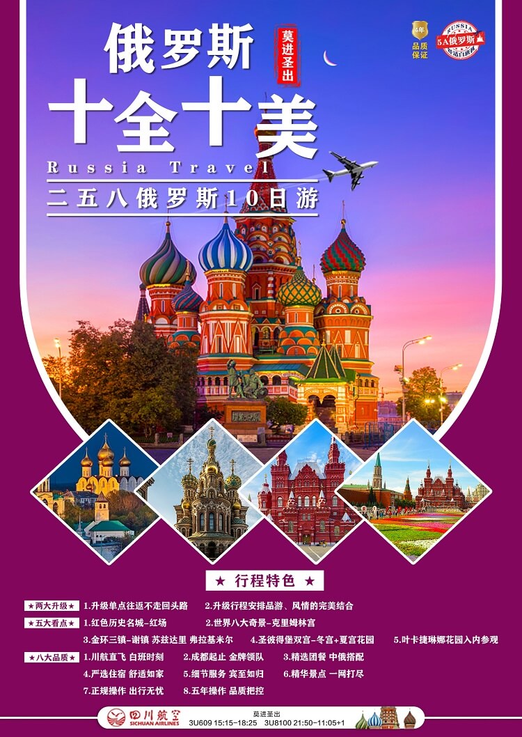 6、以上推荐自费项目均为俄罗斯热门景点,因此游客众多时官方将指定团队游客的入内参观时间,当天的行程顺序可能由此而发生调整,具体参观时间以最终预约为准,敬请谅解!